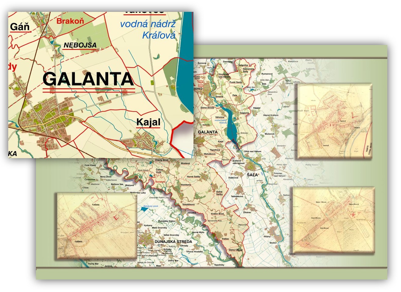 Ukážka mapy s tématickými prvkami (historické katastrálne mapy)