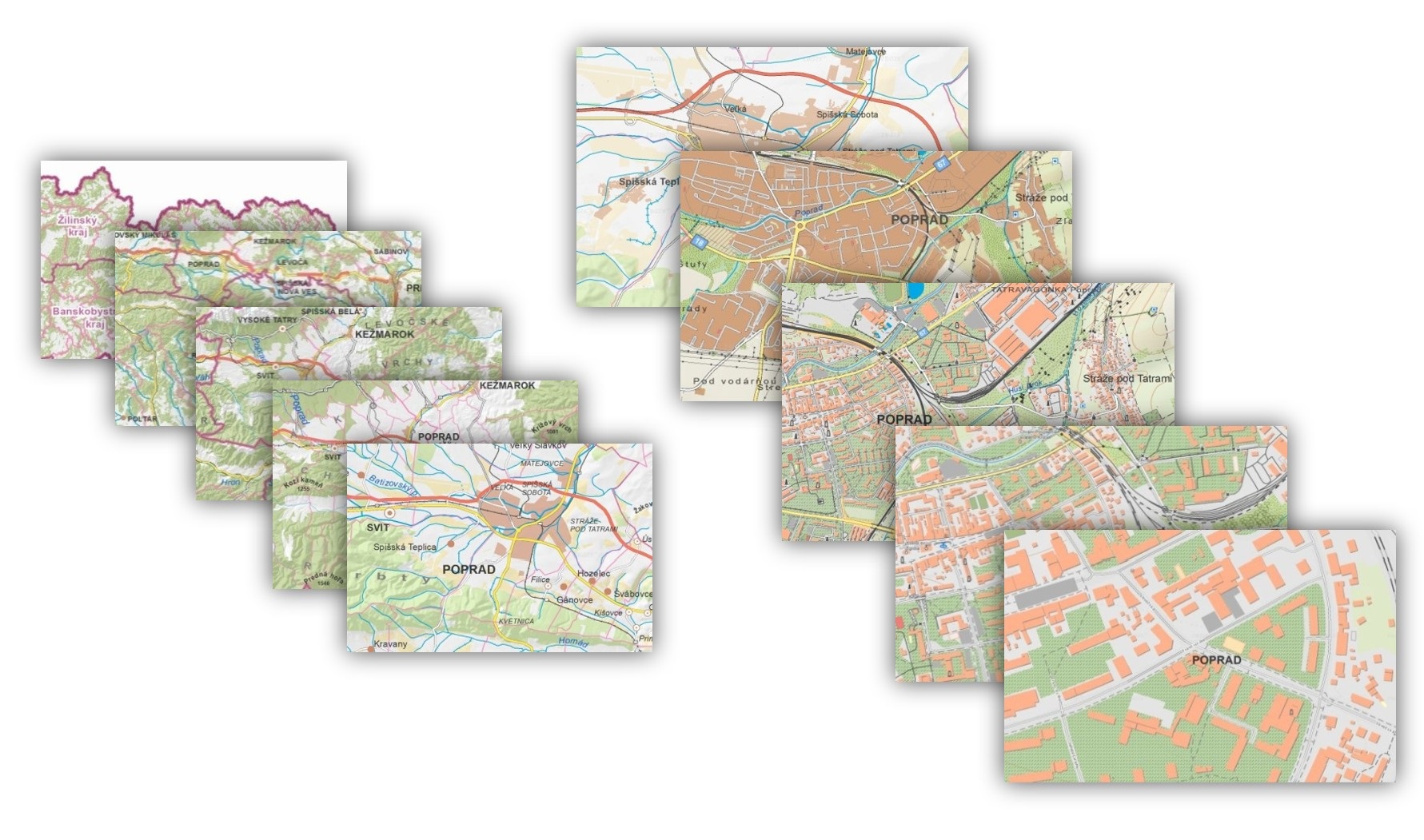 Pre webovú aplikáciu MAPKA bolo vytvorených sedem mapových tém a pre všetky mierkové sady od 1 : 2 000 po 1 : 2 000 000 bolo použité komplexné kartografické vyjadrenie.